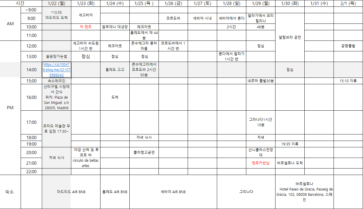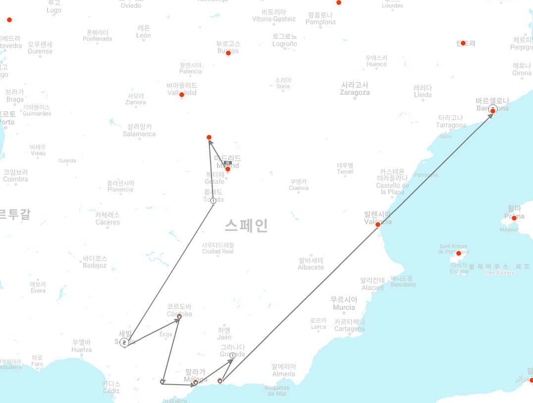 두 번째로, 또가남이 다녀온 스페인 10박 11일 루트를 말씀드리면