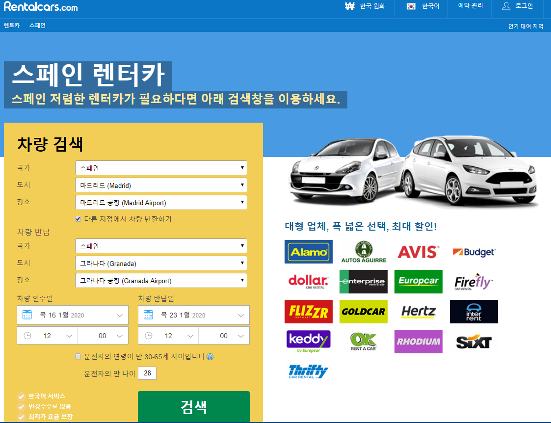 저렴한 가격 렌트카, 비교 렌터카 가격 - Rentalcars.com