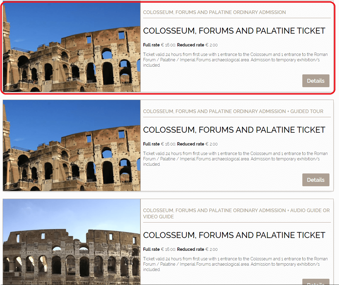 콜로세움 통합권은 콜로세움 + 포로로마노 + 팔라티노 언덕 까지 포함한 상품입니다.