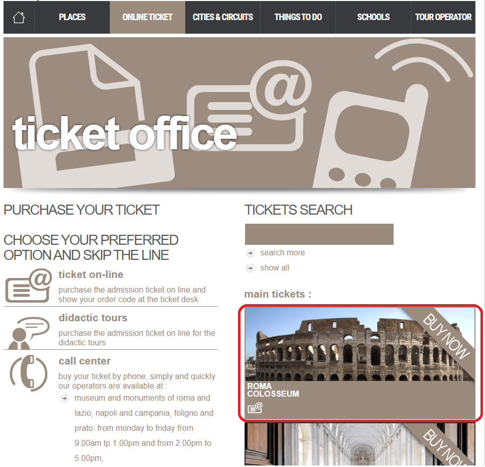 ONLINE TICKET을 누르신 후 우측 최상단에 있는 콜로세움을 누르셔야 겠죠?