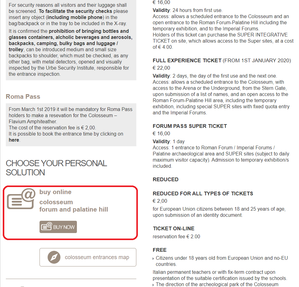 앞서 로마 여행 코스 포스팅에서 말씀드린 대로 비수기에 여행하시는 분들은 콜로세움이 붐빌 경우 포로 로마노에서 티켓을 구매하신 후 콜로세움으로 입장하는 것이 좋다고 말씀드렸는데요, 성수기일 경우 포로 로마노도 콜로세움 못지 않게 붐빌 수 있기 때문에 예약을 하고 가시는 게 좋습니다.
