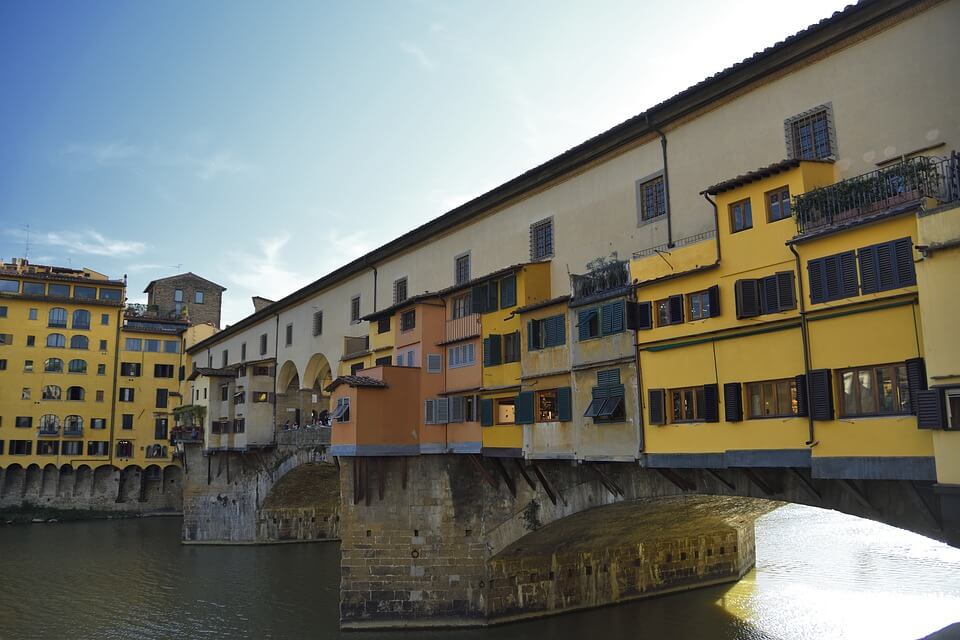 피렌체를 흘러지나는 아르노 강 위의 다리 중에 가장 오래된 다리로 로마시대의 마지막 다리로 알려져 있습니다. 현재 베키오 다리에는 보석상이 많은데요, 원래 이곳에는 푸줏간, 대장간 등이 있었는데 페르디난도 1세라는 왕이 악취가 난다며 모두 추방하고 대신 금세공업자들이 들어왔다고 합니다.