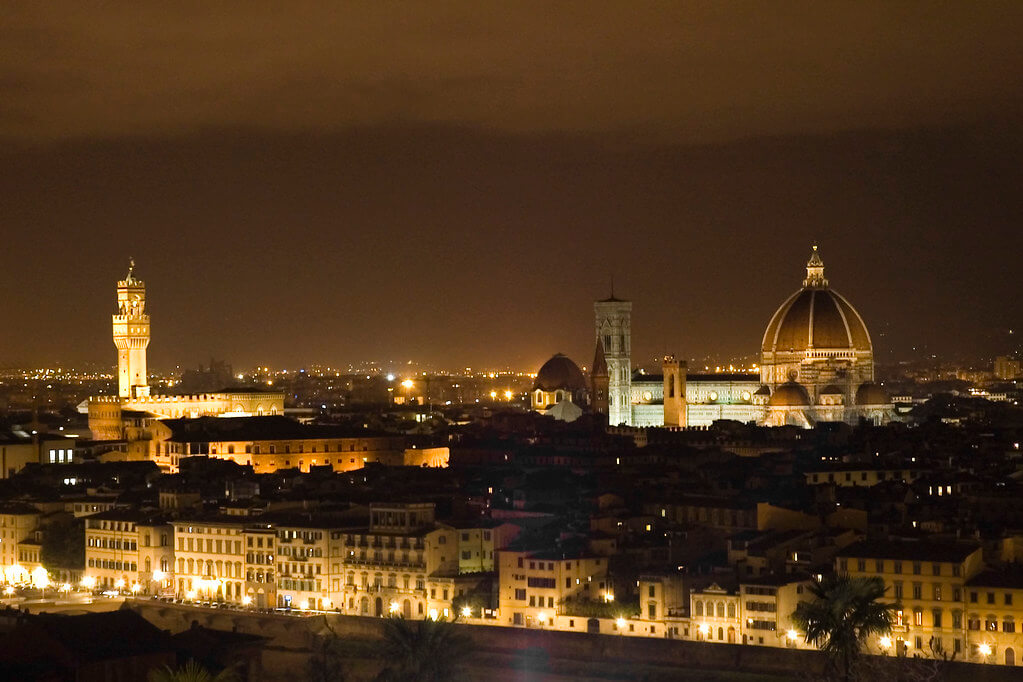 피렌체는 로마의 북서쪽에 위치한 도시로, 이탈리아 르네상스의 중심지입니다. 13~15세기의 예술작품이 많이 남아 있는데, 시뇰리아 궁전을 비롯해서 산타마리아 델 피오레 교회, 조토의 벽화 등 시내 중심부는 거리 전체가 박물관과 견주어도 손색이 없습니다.