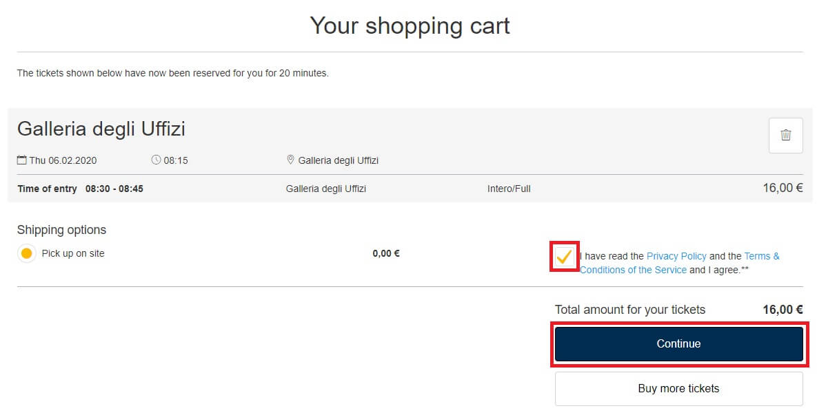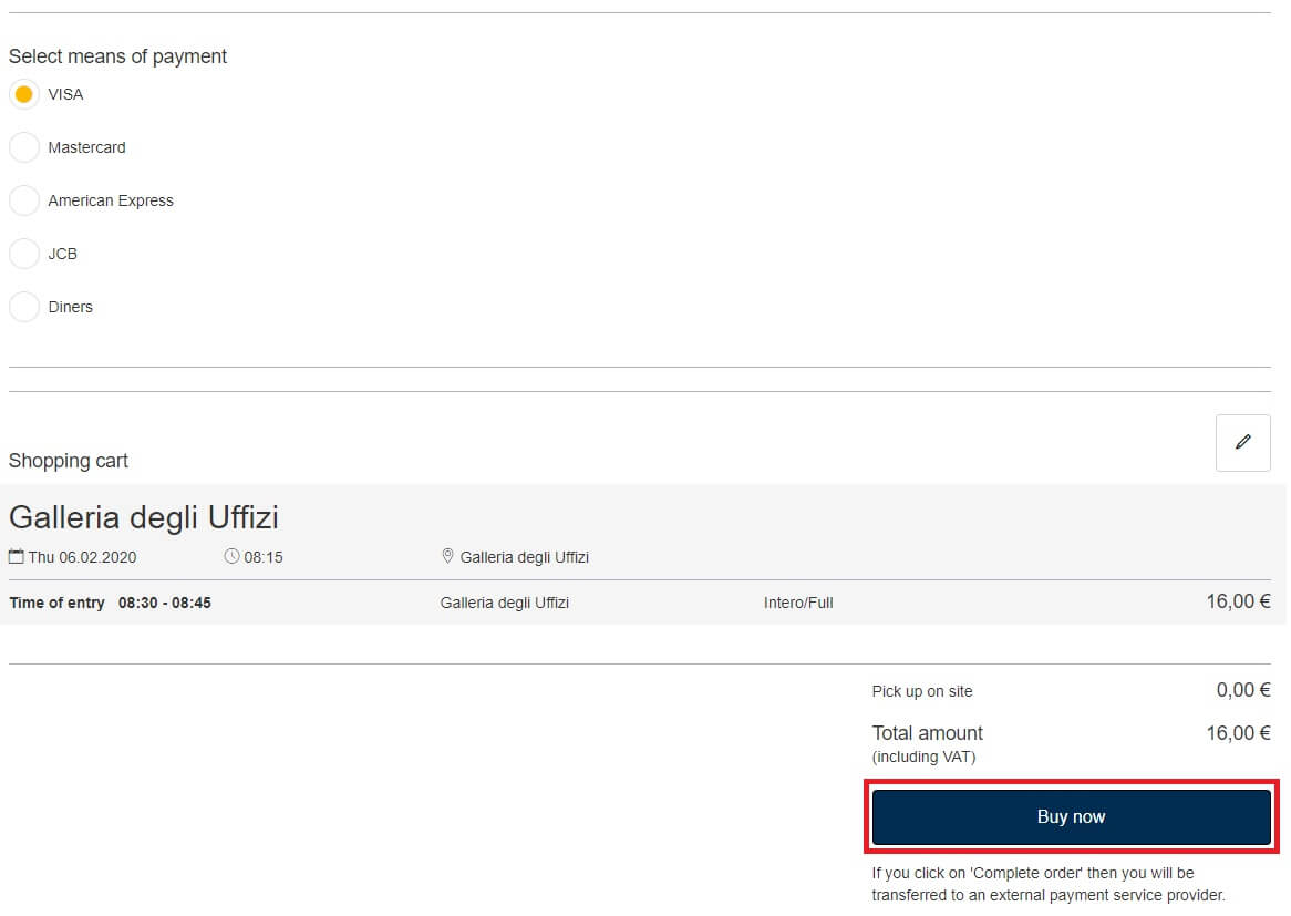 먼저 아래의 우피치 미술관 공식예약사이트에 접속합니다.