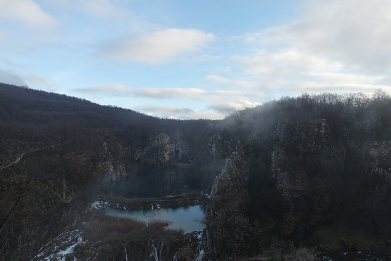 겨울의 플리트비체 국립공원은 모든 코스가 오픈되어 있지 않습니다.
