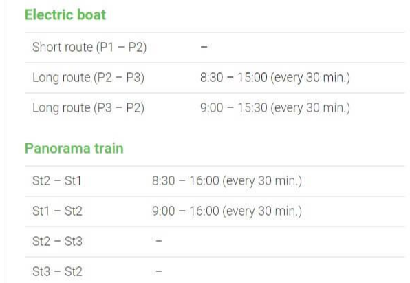 코스 가운데, 보트와 조그만 관광기차를 이용할 수 도 있습니다. 위의 지도에 표시된 지점에서 30분마다 운영하고 있으니 참고하세요.