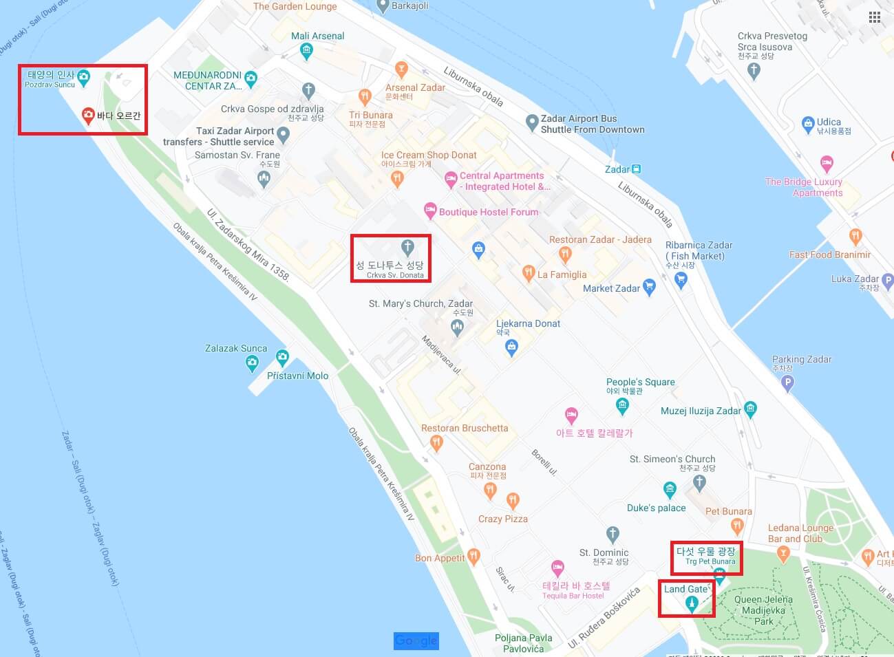 자다르의 볼거리는 대부분 좁은 구시가지에 집중되어 있습니다. 그냥 둘러보기만 하신다면 3-4시간 정도 잡으시면 쓱 둘러보고 다음 목적지로 향하실 수 있을 것 같네요. 박물관이나 신시가지까지 둘러보실 분은 조금 더 넉넉하게 시간 분배를 하셔야 할 것 같습니다.