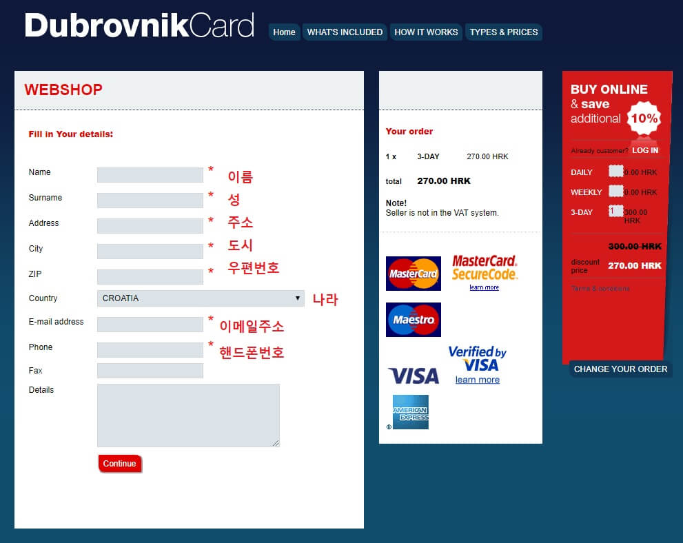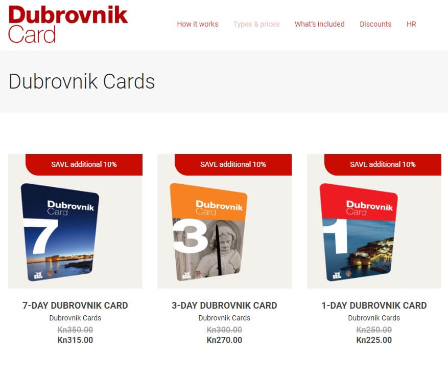 두브로브니크 카드는 인터넷으로 예매할 경우 10% 할인된 가격에 구매할 수 있기때문에, 사전 구매 후 두브로브니크를 방문하시는 것을 추천드립니다.