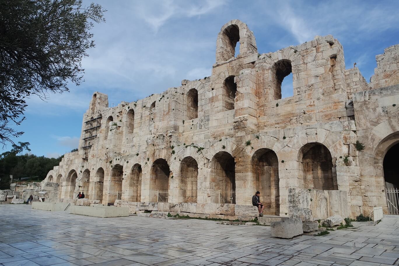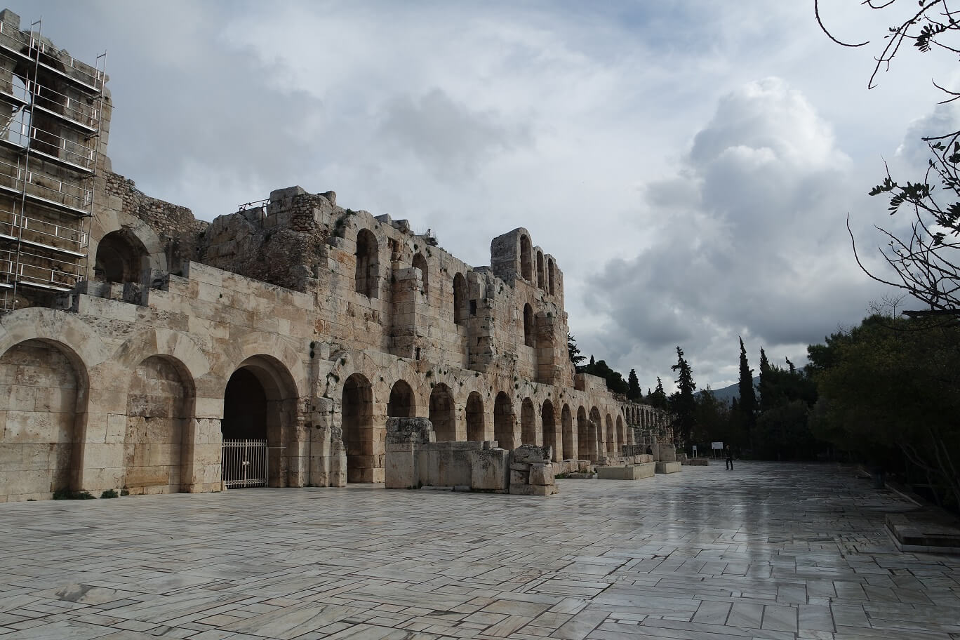 아크로폴리스로 올라가는 길에 볼 수 있는 헤로데스 아티쿠스 극장입니다. 이 극장은 161년에 건축되었고 놀랍게도 아직 실제로 사용되고 있습니다. 비수기에는 폐쇄되어 있지만 성수기에는 뮤지컬이나 연극 등의 공연을 실제로 이곳에서 연다고 합니다. 유명한 디오니소스 극장보다 오히려 더 보존이 잘 되고 있었습니다.
