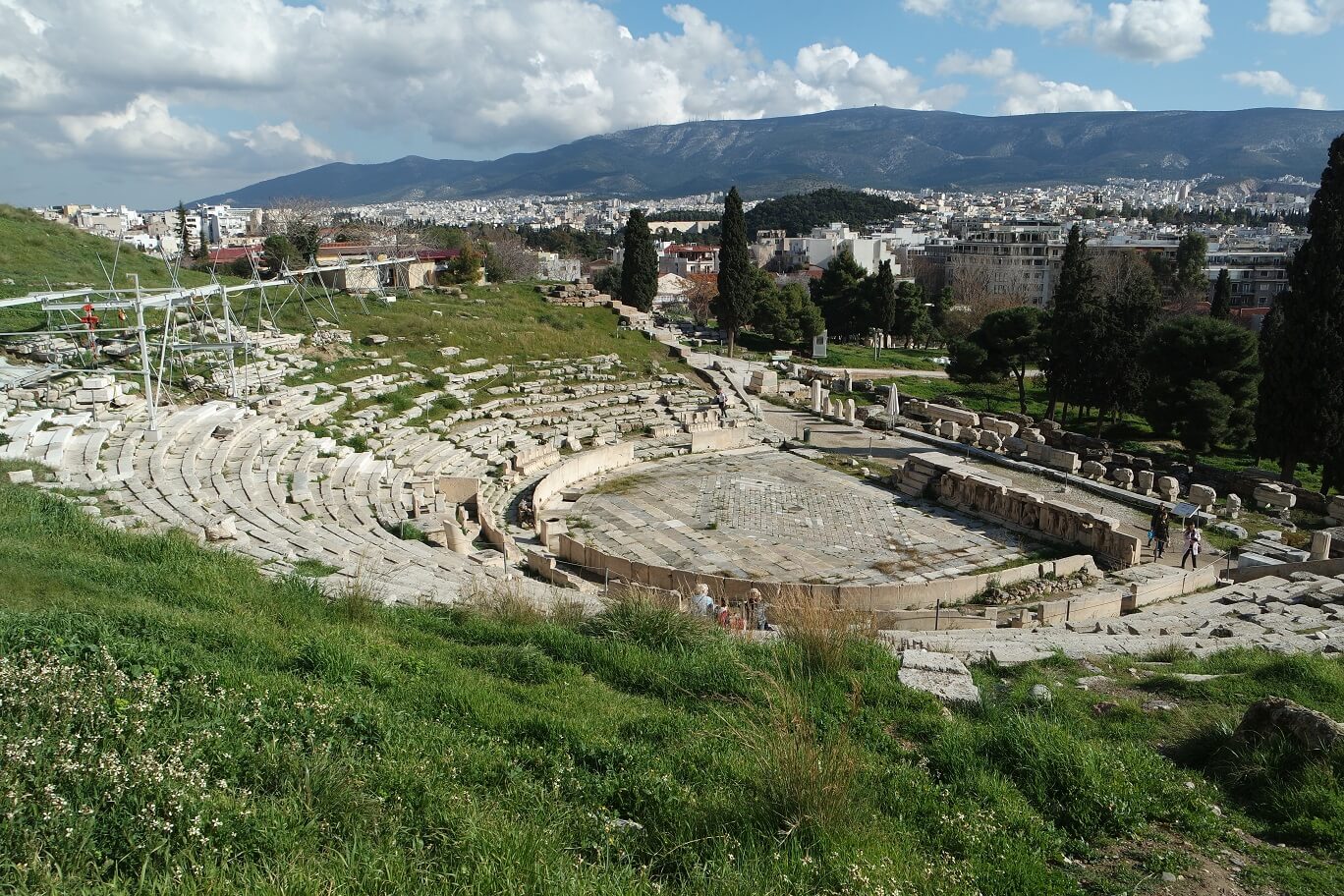 디오니소스 극장은 아크로폴리스의 바로 아래에 위치해 있습니다. 오늘날까지 내려오는 모든 그리스 연극이 이곳에서 초연되었다고 하는데, 다산의 신 디오니소스의 이름을 딴 이 극장은 봄마다 신에게 올리는 축제가 거행될 때 사용되었다고 합니다.