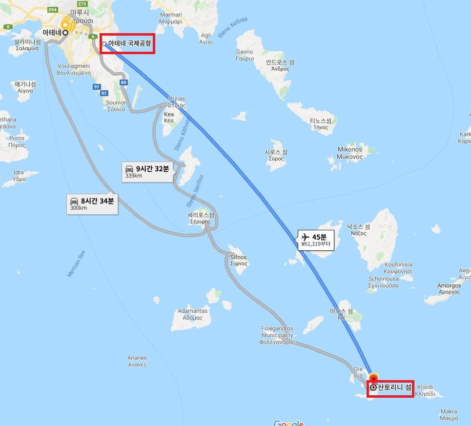 아테네에서 산토리니까지 운행하는 여행사는 몇 가지가 있는데, 가격이 저렴한 에게안 에어, 올림픽 에어, 라이언에어를 추천드립니다.